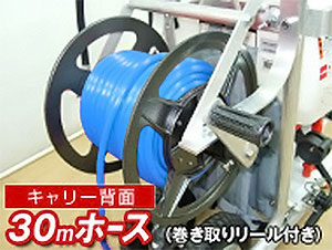 30mホース・巻き取り用リールが付いていますので、ホースが届く範囲なら本体を置いたまま作業が可能です。