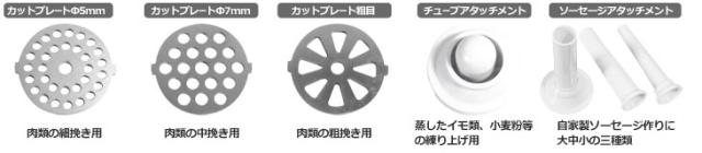 3種類のカットプレートと豊富なアタッチメントが標準付属!