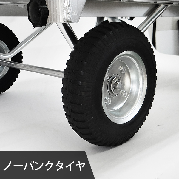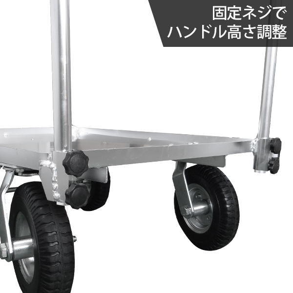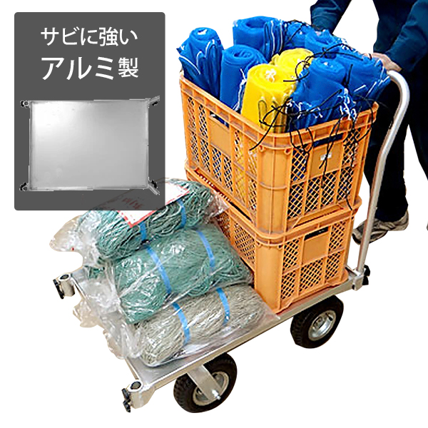 荷台はアルミ板を張っていますので、通常の台車としてもお使いいただけます。アルミの頑丈な構造の為、サビに強いです。