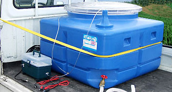 活魚の中距離輸送を可能にした画期的な活魚運搬エアー供給システムです。エアーポンプで発生されたエアーが、エアストーンから非常に小さい泡となって水槽の中で酸素を補給します。12Vバッテリー&100V電源兼用型で電源切り替えスイッチが付いているため、車のシガーソケット・12Vバッテリー・家庭用100Vコンセントなどさまざまな場所での電源供給が可能です。