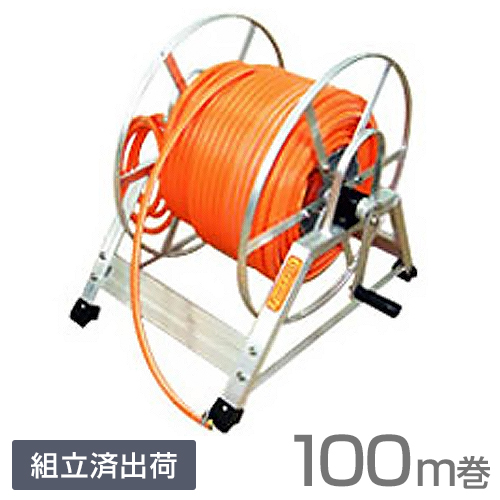 アルミ製 高圧スプレー用ホースリール+防除ホース100m巻セット 【組立済み出荷】