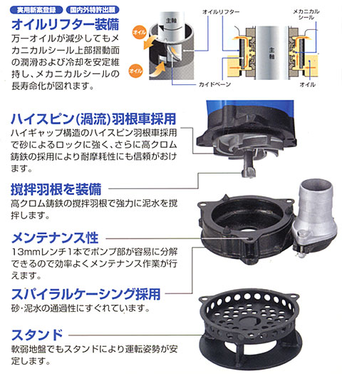 またモータ出力0.55kWのモータを搭載し、泥水排水の過酷な条件にも