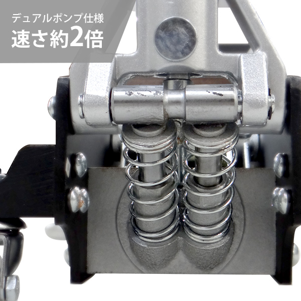 デュアルポンプで素早い作業 油圧ポンプを2個搭載しており、一度のストロークでより高くジャッキアップします。 -