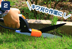 刃先を回転させることで、花壇のキワや狭い場所での芝刈りにも最適です。