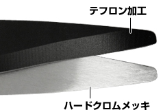 刃先は切刃がテフロン加工、受刃がハードクロムメッキなので、耐久性があり、切れ味抜群です。