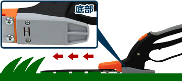 底部にはスライドカバーがついているので、真っ直ぐ、安定した状態で芝を刈ることができます。