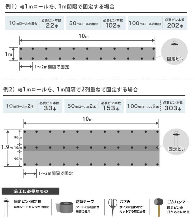 防草シートの性質上、直射日光等に当たると若干縮む場合がございます。施工予定より少し余裕を持ち敷いていただく事をおすすめいたします。