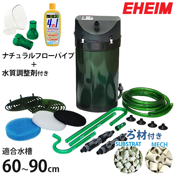 エーハイム クラシックフィルター 2215+ろ材+ナチュラルフローパイプ+水質調整剤500ml付