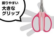 手に直接触れる部分には軟質樹脂を採用。ラクに手が入る大きなグリップは、作業の際につかみやすく、複数本の指を入れることができるので、指1本に負担をかけず切ることができます。