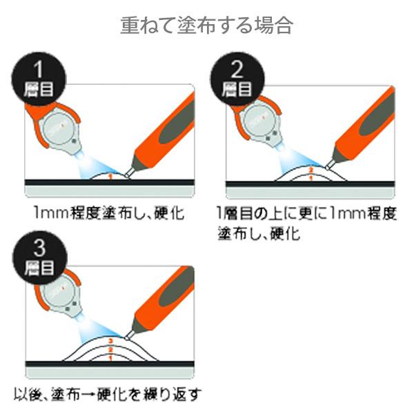 - 付属のUV LEDライトを4秒間〜照射し、BONDICを硬化させます。必要な厚さに応じて、何層か作製します。それぞれの層毎に硬化させて下さい。