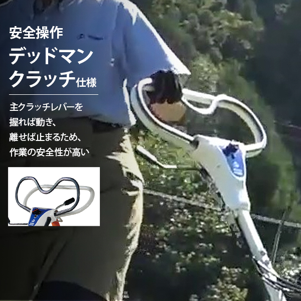 握れば動き、離せば止まるデッドマンクラッチで作業の安全性を高めます。