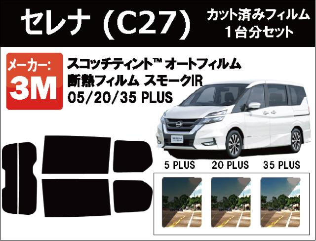高品質 断熱 3M (スリーエム) スモークIR PLUS セレナ C27系 カット済みカーフィルム リアセット