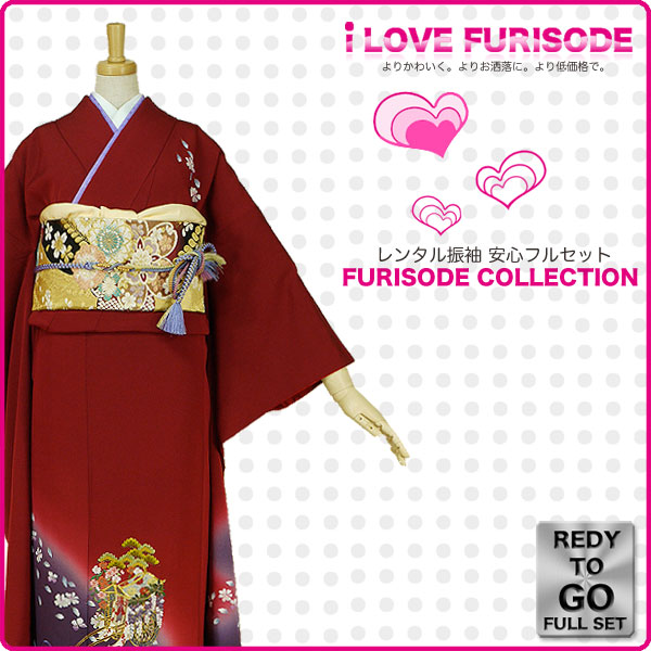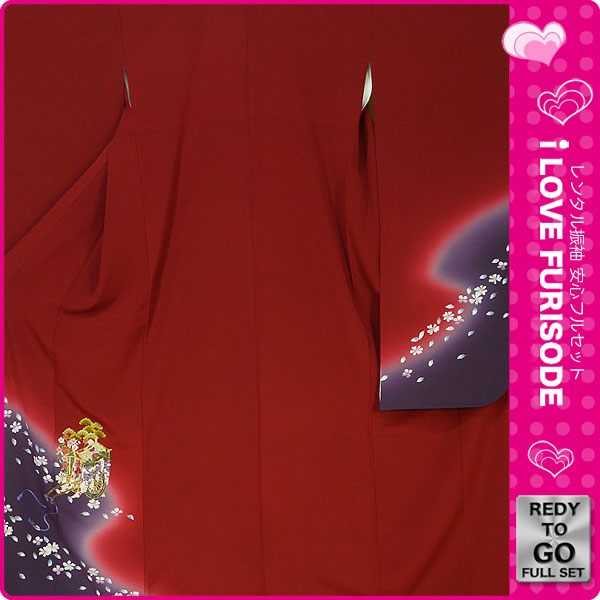 レンタル 振袖 フルセット 貸衣装 赤 red系 No.102 適応身長:150〜160cm位