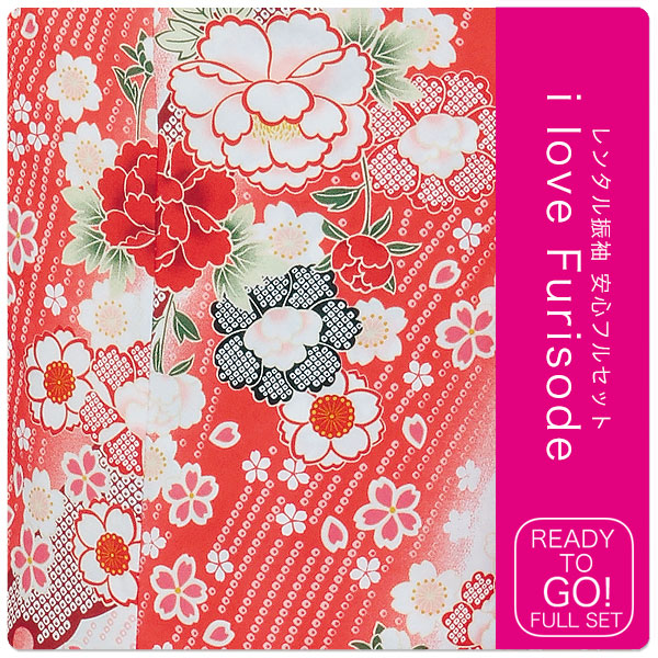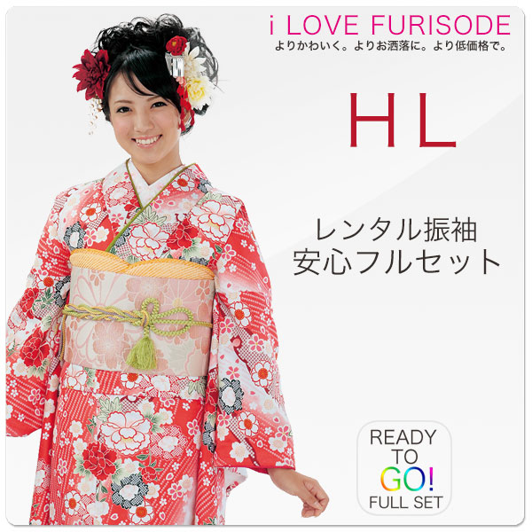 レンタル 振袖 フルセット 貸衣装 HL アッシュエル ブランド適応身長:150〜165cm位 No.1326 レトロ 古典 赤 白 系