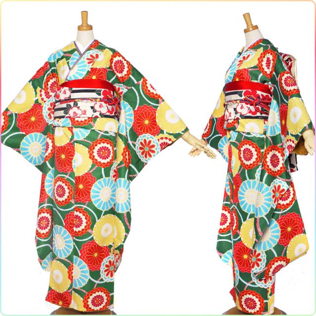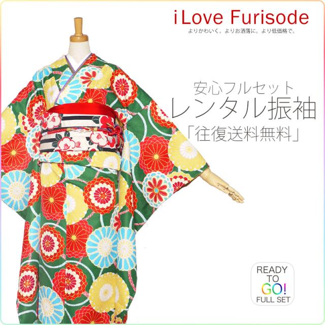 レンタル 振袖 フルセット 貸衣装 玉城ティナ×キスミス ブランド 貸衣装 緑 菊 振袖 適応身長:155〜165cm位