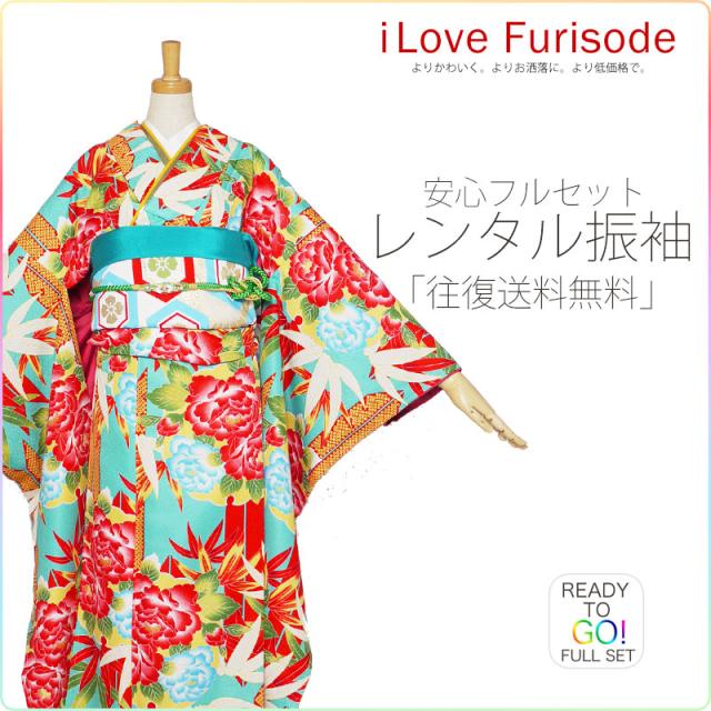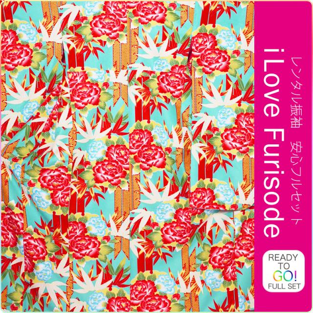 レンタル 振袖 フルセット 貸衣装 玉城ティナ×キスミス ブランド 貸衣装 水色 牡丹 竹 振袖 適応身長:155〜165cm位