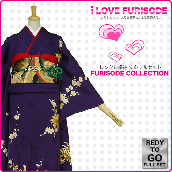 レンタル 振袖 フルセット 貸衣装 青 ブルー blue系 No.160 適応身長:150〜165cm位