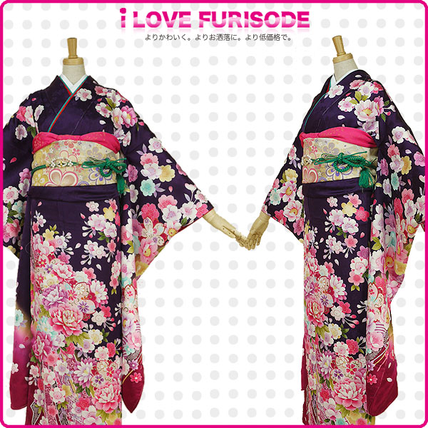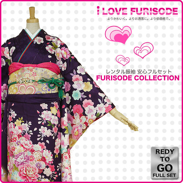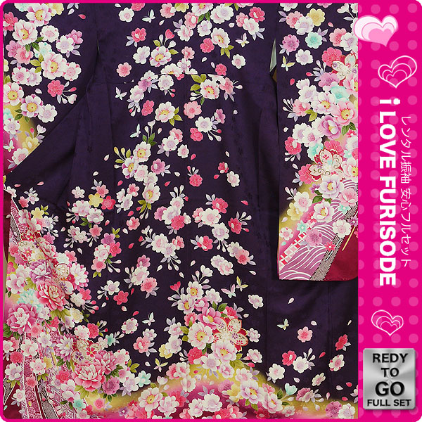 レンタル 振袖 フルセット 貸衣装 紫 パープル purple系 No.170 適応身長:150〜165cm位
