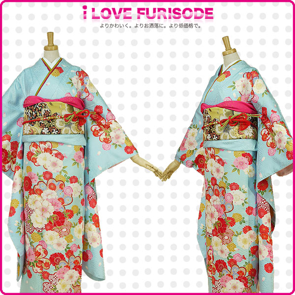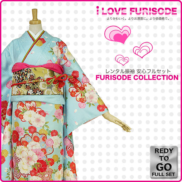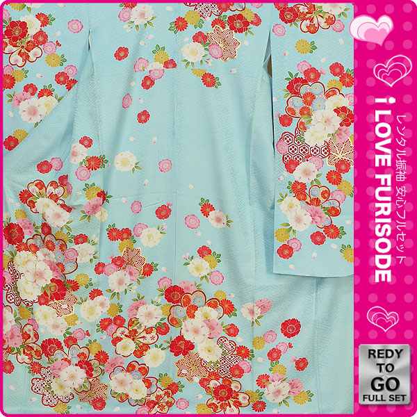 レンタル 振袖 フルセット 貸衣装 青 ブルー Blue系 No.173 適応身長:150〜165cm位