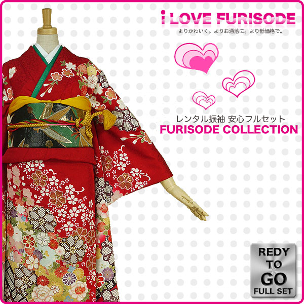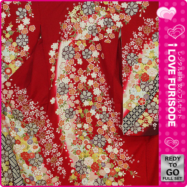 レンタル 振袖 フルセット 貸衣装 赤 red系 No.186 適応身長:150〜165cm位