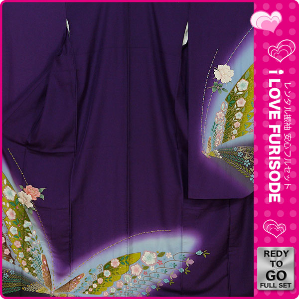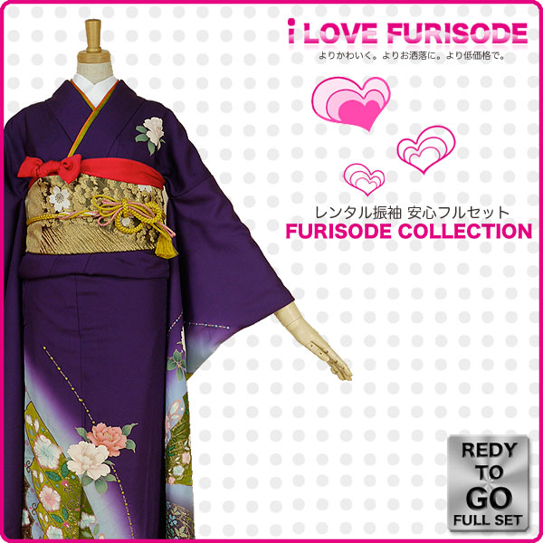 レンタル 振袖 フルセット 貸衣装 紫 パープル purple No.209 振袖 適応身長:150〜160cm位