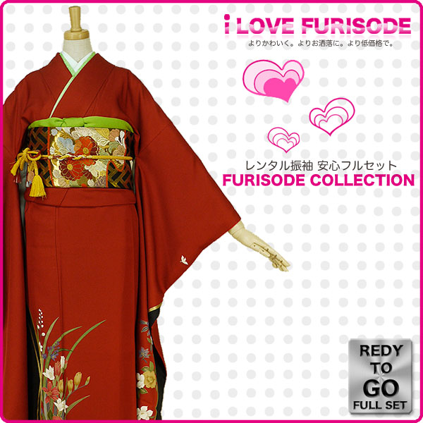 レンタル 振袖 フルセット 貸衣装 赤 レッド red No.321 振袖 適応身長:150〜165cm位