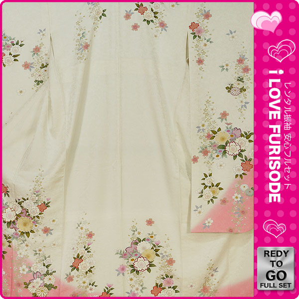 レンタル 振袖 フルセット 貸衣装 白 ホワイト white No.505 振袖 適応身長:160〜170cm位