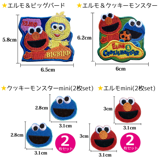 セサミストリート ワッペン 刺繍 アイロン接着 キャラクター エルモ ビッグバード クッキーモンスター オスカー 手芸 正規品 母の日 プレゼント ギフト