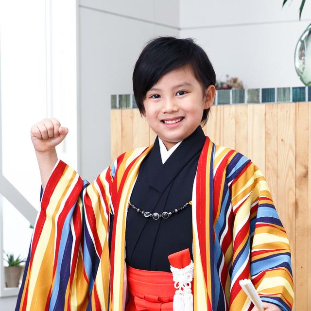 にこるん 藤田ニコル 羽織袴 カンタン着付け アンサンブル レンタル 七五三 貸衣装 男児 セット 往復送料無料 黒 朱色