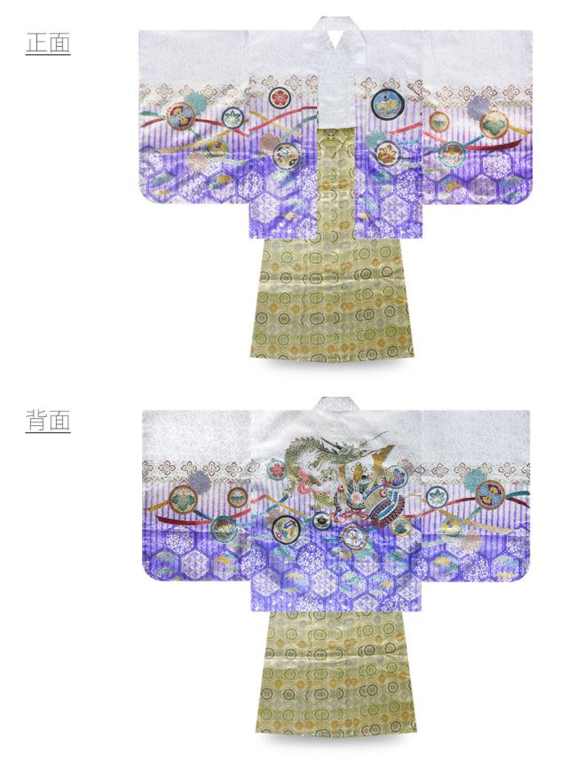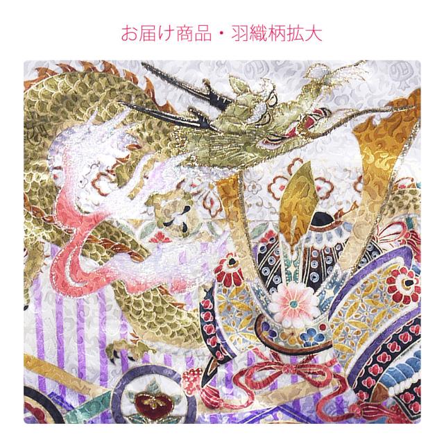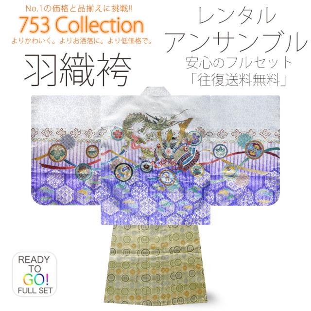 七五三 レンタル 着物 5歳 羽織袴 カンタン着付け アンサンブル 五歳 貸衣装 七五三 子供 男児 男の子 往復送料無料 刺繍 龍 兜 白 紫
