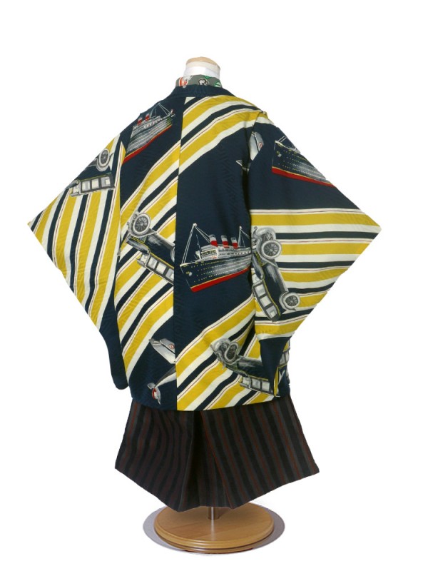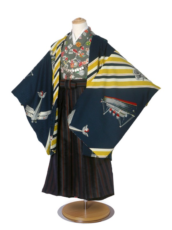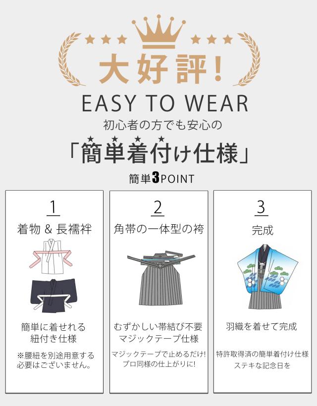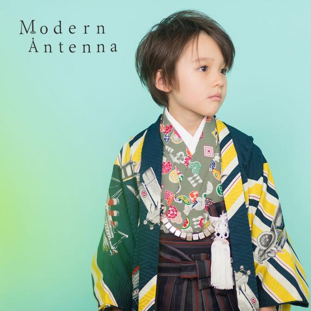 レンタル Modern Antenna 羽織袴 カンタン着付け アンサンブル 七五三 貸衣装 男児 セット 往復送料無料 レトロ 黒 緑