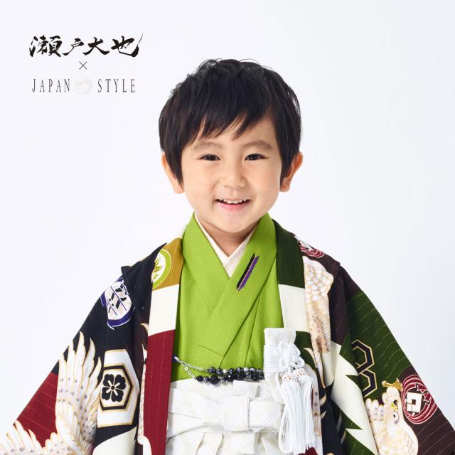 レンタル 瀬戸大也×JAPAN STYLE 羽織袴 カンタン着付け アンサンブル 3歳 三歳 貸衣装 子供 男児 セット 往復送料無料 黒 白
