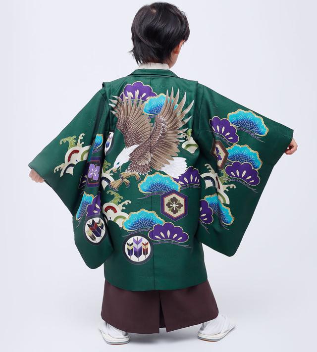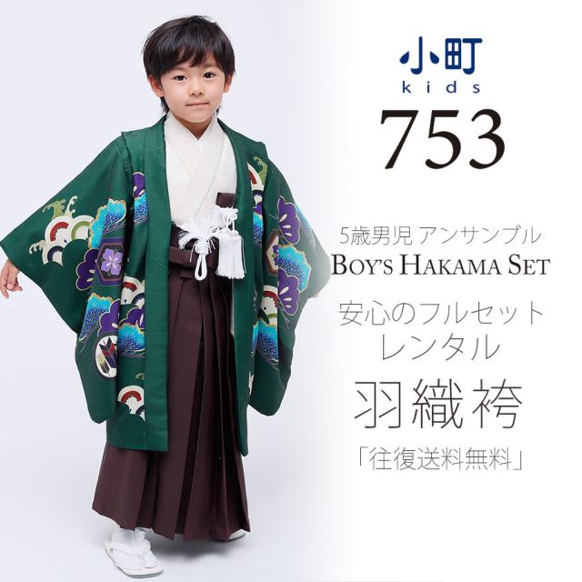 七五三 五歳 男児 着物 レンタル 小町kids 羽織袴 カンタン着付け アンサンブル 5歳 五歳 貸衣装 子供 男児 男の子 往復送料無料 緑 龍