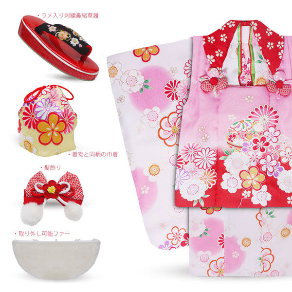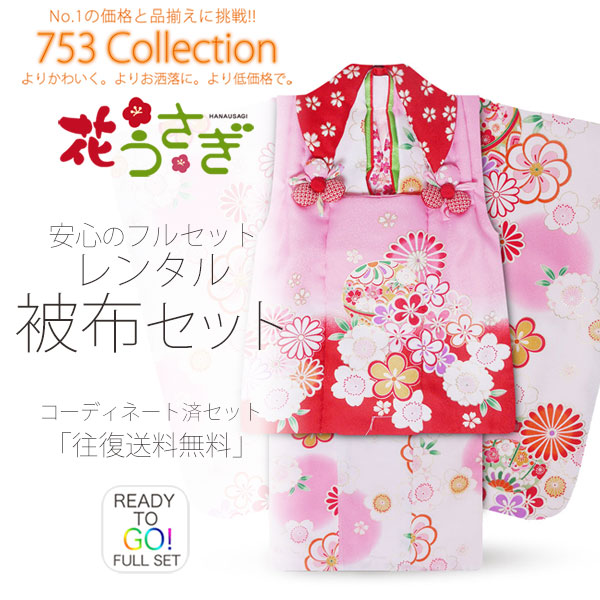 花うさぎ 被布コート レンタル 3歳 三才 貸衣装 七五三 子供 女児 セット 往復送料無料 ピンク 赤 白