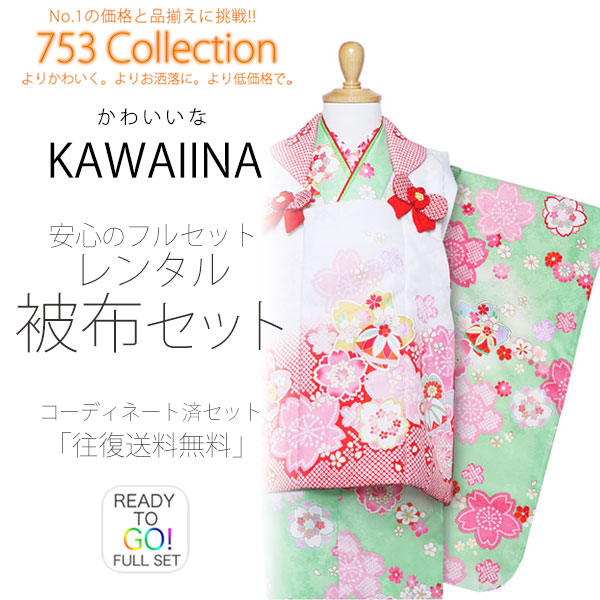 KAWAIINA 被布コート レンタル 3歳 三才 貸衣装 七五三 子供 女児 セット 往復送料無料 赤 白 ミントグリーン