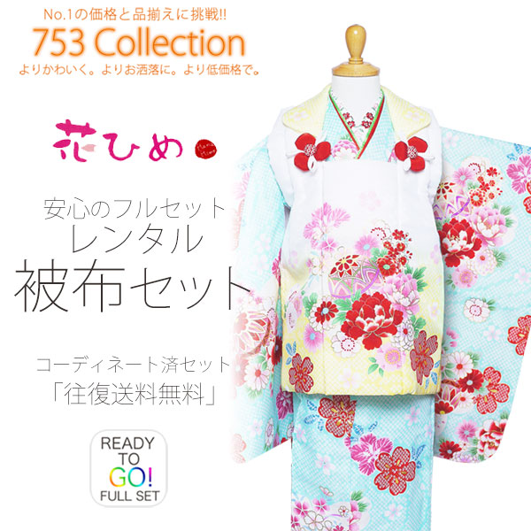 花ひめ 被布コート レンタル 3歳 三才 貸衣装 七五三 子供 女児 セット 往復送料無料 黄色 水色 古典柄
