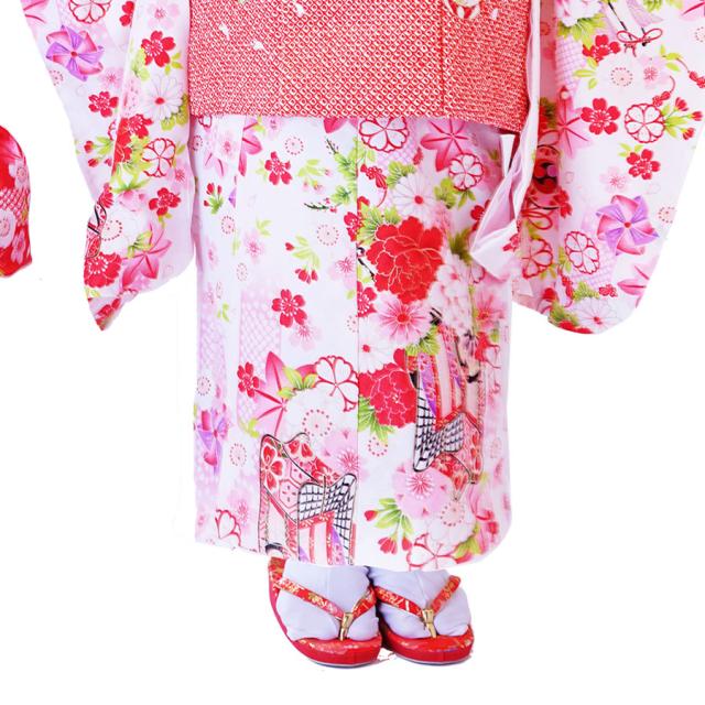 七五三 3歳 被布コート レンタル 着物 貸衣装 三才 子供 女児 往復送料無料 赤 白 鹿の子柄