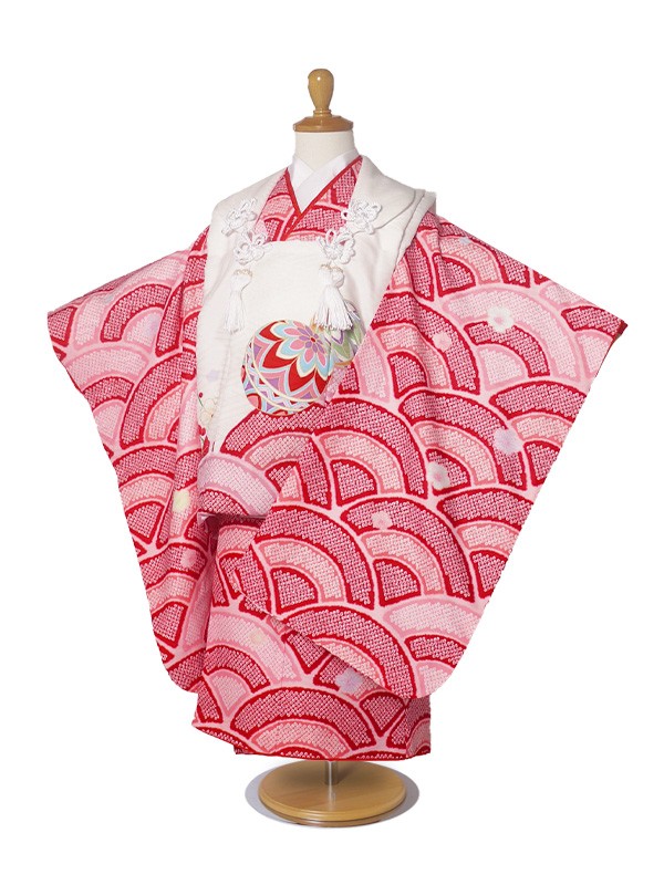 レンタル KAGURA 被布コート 七五三 貸衣装 女児 往復送料無料 赤 ピンク 波 鹿の子柄