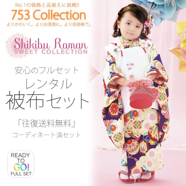 レンタル 式部浪漫 被布コート 七五三 貸衣装 女児 往復送料無料 紫 白 桜 鞠