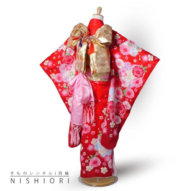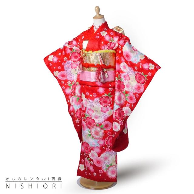 七五三 レンタル 正絹 四つ身 着物 花ひめ 七五三 貸衣装 女児 和服 セット 古典 和柄 往復送料無料 赤 7歳 七歳 女の子