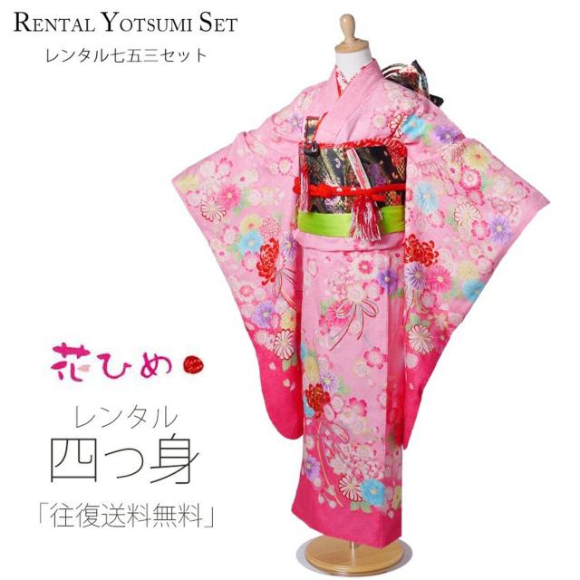 七五三 レンタル 正絹 四つ身 着物 花ひめ 七五三 貸衣装 女児 和服 セット 古典 和柄 往復送料無料 ピンク