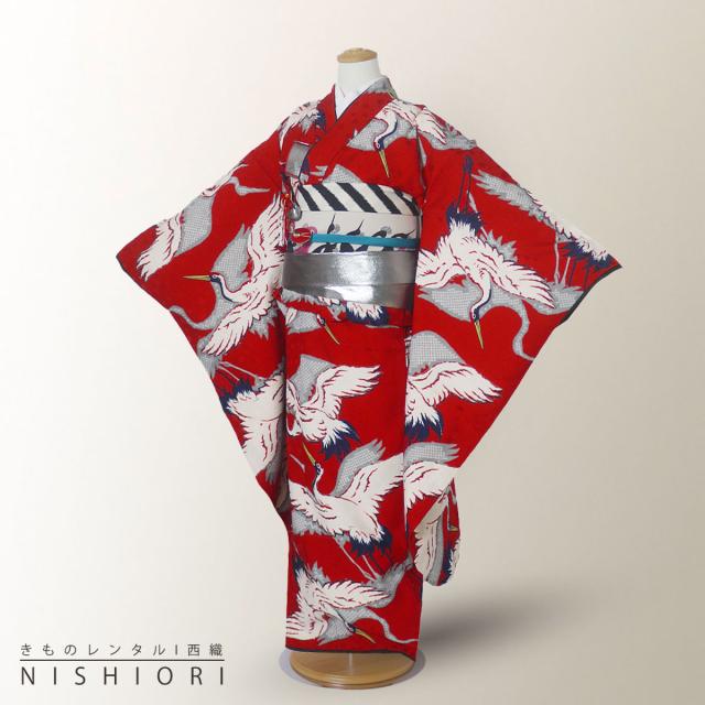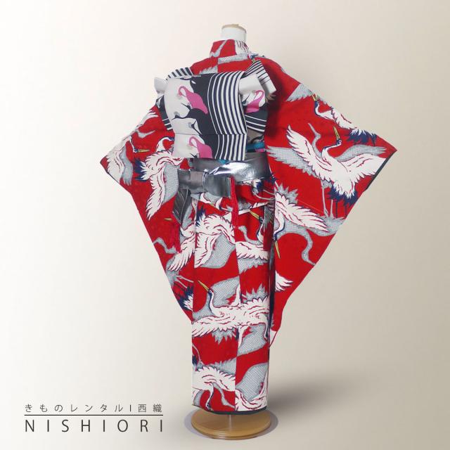 レンタル Modern Antenna 七五三 四つ身 着物 七五三 女児 和服 セット 古典 往復送料無料 古典 鶴 赤 お参り【7歳 貸衣装 七歳 女の子】