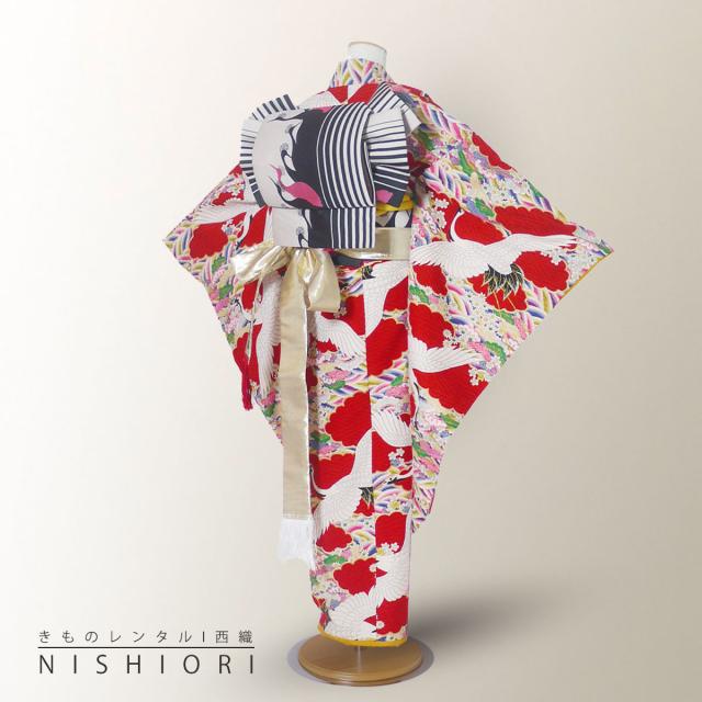 レンタル Modern Antenna 七五三 四つ身 着物 七五三 貸衣装 女児 和服 セット 古典 往復送料無料 古典 鶴 赤