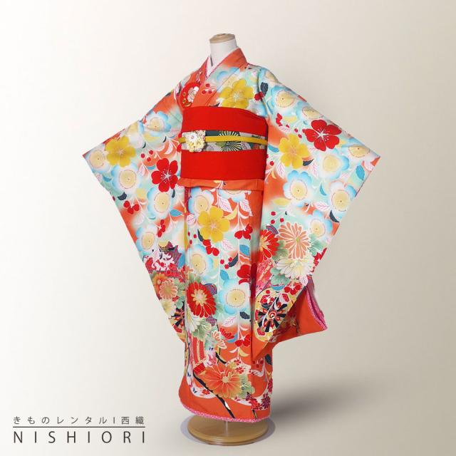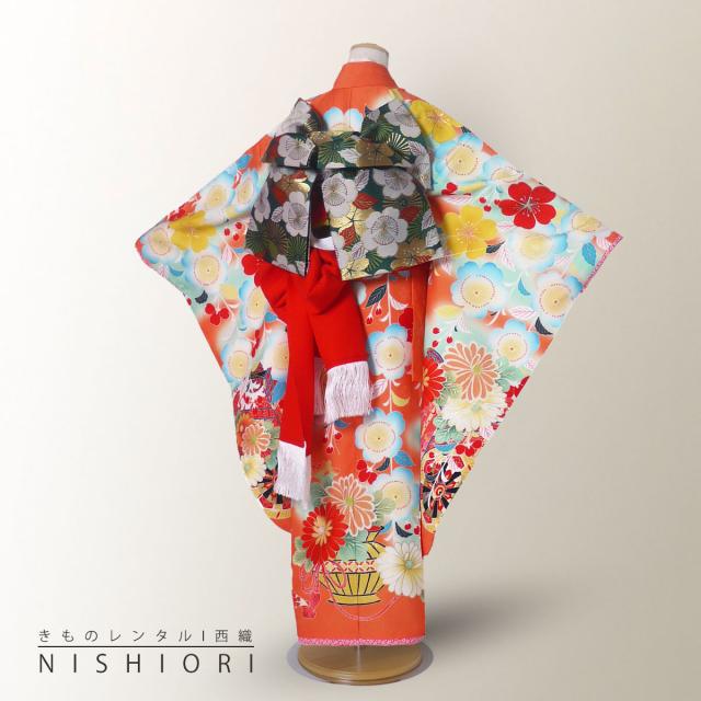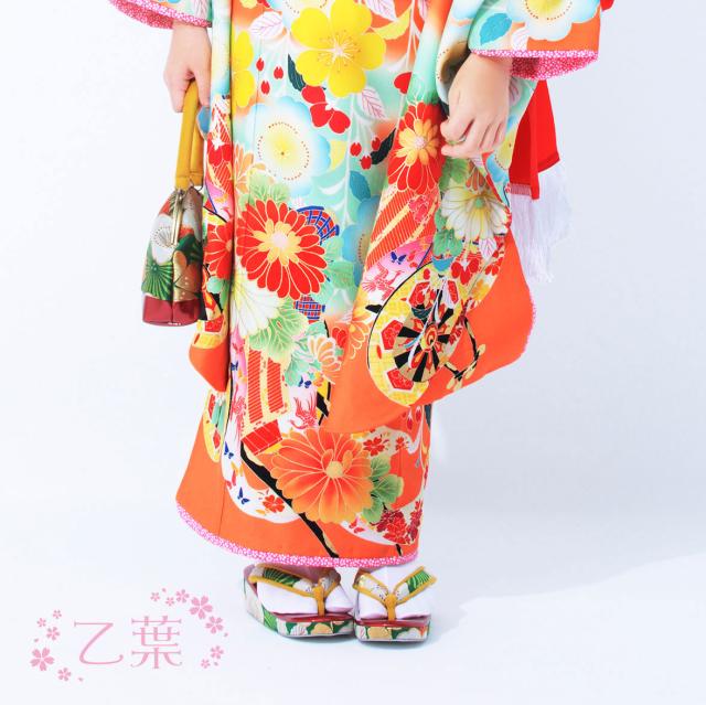 レンタル 乙葉 七五三 四つ身 着物 七五三 貸衣装 女児 和服 セット 古典 往復送料無料 古典 オレンジ