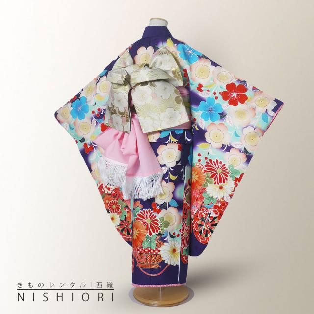 レンタル 乙葉 七五三 四つ身 着物 七五三 貸衣装 女児 和服 セット 古典 往復送料無料 古典 青 紫