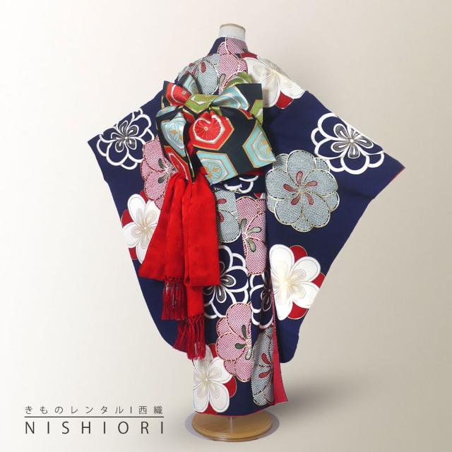 紅一点 七五三 レンタル 四つ身 着物 七五三 貸衣装 女児 和服 セット 古典 往復送料無料 古典 紺 ねじり梅