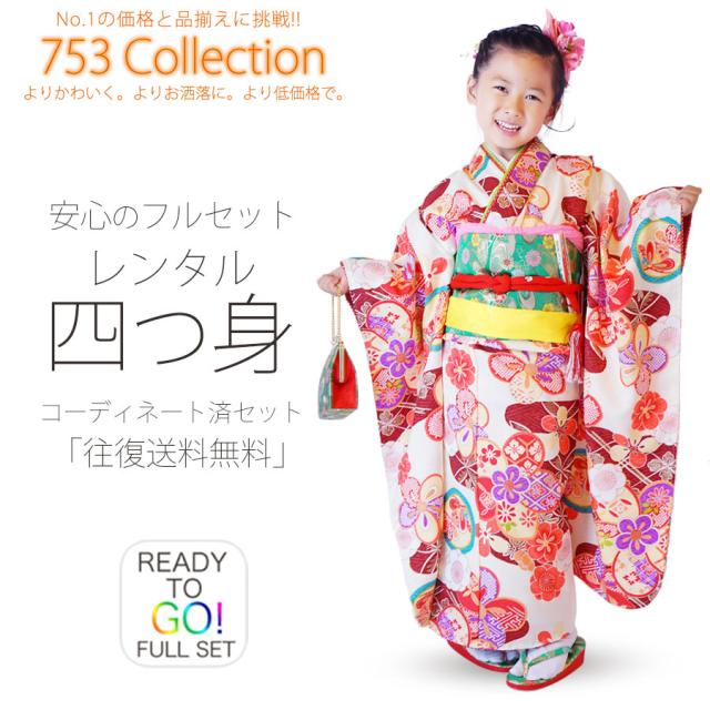 七五三 レンタル 四つ身 着物 七五三 貸衣装 女児 和服 セット 古典 往復送料無料 古典 黄緑 白