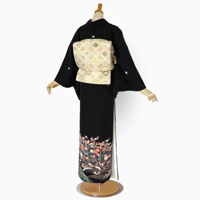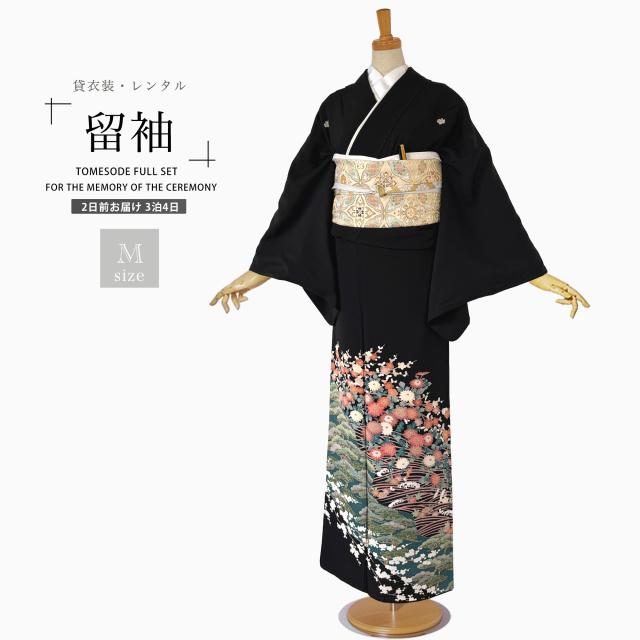 【レンタル】黒留袖 フルセット 五三桐 正絹 礼装 結婚式 母親 親族用 着物 3泊4日 往復送料無料 簡単返却 【Mサイズ No.0020】