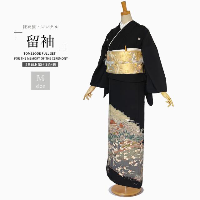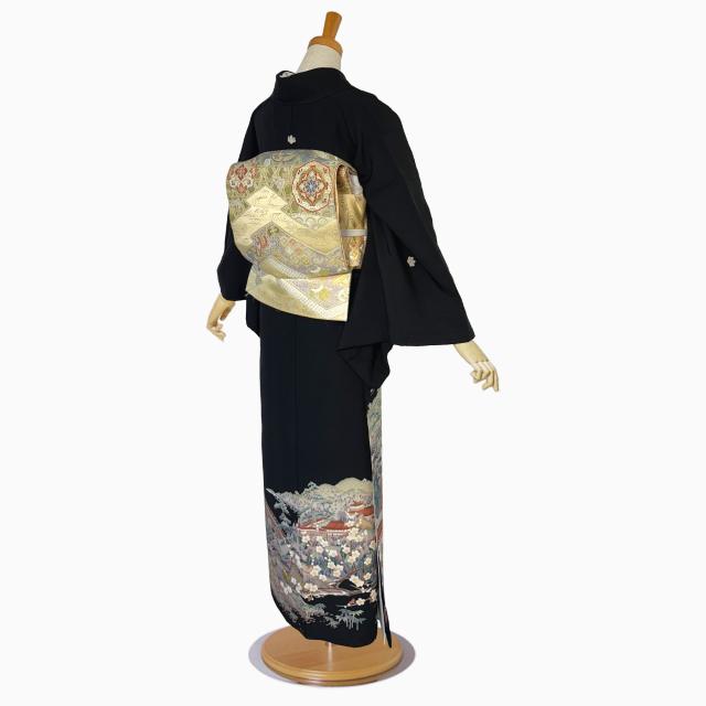【レンタル】黒留袖 フルセット 五三桐 正絹 礼装 結婚式 母親 親族用 着物 3泊4日 往復送料無料 簡単返却 【Mサイズ No.0030】