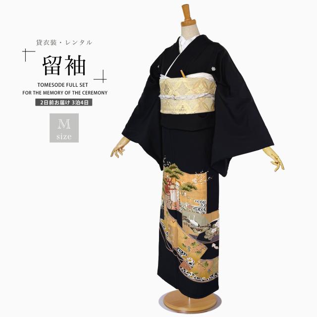 【レンタル】黒留袖 フルセット 五三桐 正絹 礼装 結婚式 母親 親族用 着物 3泊4日 往復送料無料 簡単返却 【Mサイズ No.0036】